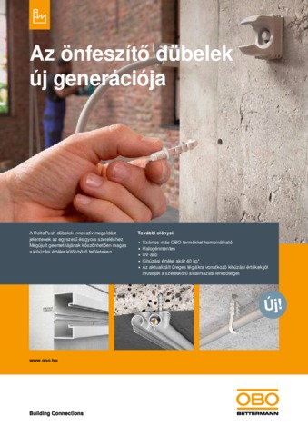 Fedezze fel a műanyag dübelek új generációjátÚj mércét állítunk fel az önfeszítő dübelek területén: az OBO Delta-Push® Könnyen felszerelhető, ugyanakkor magas a kihúzási értéke a különböző felületeken. Az OBO dübel szilárd tartást, rugalmas alkalmazást biztosít, és számos tartozékkal egészül ki.