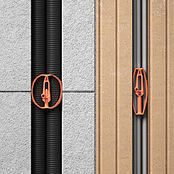 Széles tartományban, 27 mm és 45 mm közötti résszélességű falhornyokban használható és különféle felületekre – például betonra vagy mészkőre – egyaránt megbízhatóan alkalmazható. Bepattintható funkcióval rendelkezik, amely lehetővé teszi a szerszámmentes rögzítést. A kimart hornyokban a bilincs a szükséges szorítással önmagától rögzül, ezzel garantálva a tökéletes tartást.