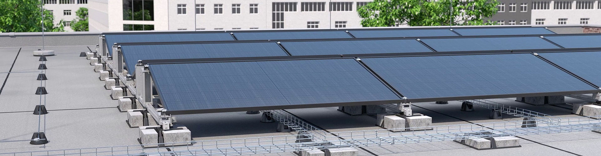 A tartószerkezet lesúlyozását az UniBase rendszer biztosítja, téglalap alakú térkővel - és akár utólag is az installációt követően. A rugalmas rendszerkomponenseknek köszönhetően a lapos- és ferdetetős rendszerek elemei egymással kombinálhatók. Ez jelentősen csökkenti a szükséges alkatrészek számát.