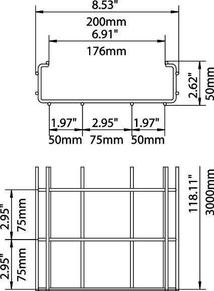 TermékleírásPonthegesztett acélhuzalból készült, 50 mm oldalmagasságú C-profilú rácsos kábeltálca.