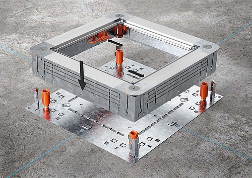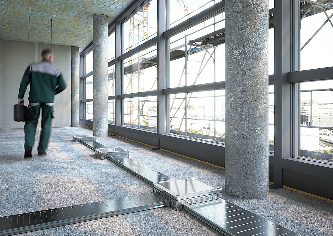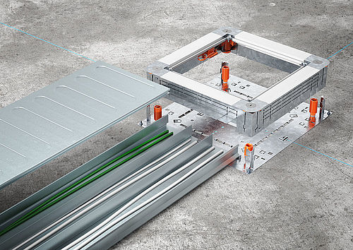 A megbízható rendszer erősségei különösen az építési szakasz során mutatkoznak meg. A szerelés ideje alatt teljesen zárva van. A padlódobozokat a szerelő-védőfedelek védik. Így idegen test nem kerülhet be a rendszerbe, és a belső tér tiszta marad. Alapállapotban a padlódobozok nagy, 80-160 mm esztrichmagasságú szintezési tartományt fednek le. További előnyei: szétválaszthatók, úgy hogy a padló alatti dobozok az esztrichben "lebegjenek". Ez a szétválasztás megakadályozza, hogy a közvetlen közeli padlóburkolaton és esztrichen repedések keletkezzenek.