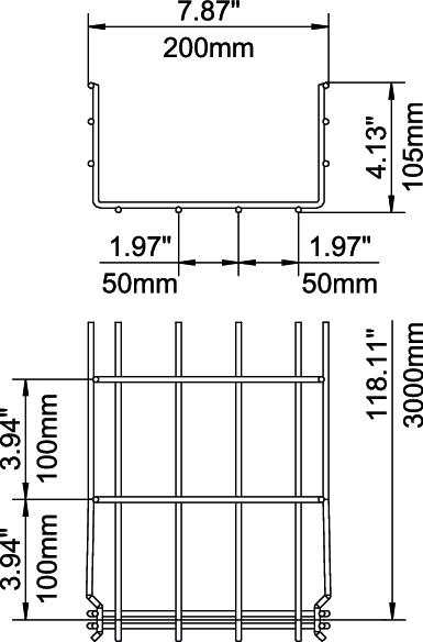 Termékleírás105 mm oldalmagasságú rácsos kábeltálca, összepattintható kivitelben.