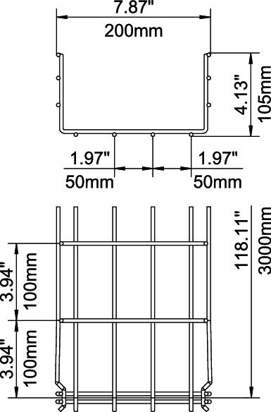 A GRM típusú rácsos kábeltálcák toldásához nincs szükség kiegészítő összekötő elemekre, egyszerűen csak egymásba kell pattintani a tálcákat. A rácsosztás 50 x 100 mm.