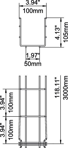 A GRM típusú rácsos kábeltálcák toldásához nincs szükség kiegészítő összekötő elemekre, egyszerűen csak egymásba kell pattintani a tálcákat. A rácsosztás 50 x 100 mm.