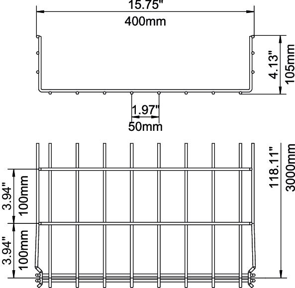 Termékleírás105 mm oldalmagasságú rácsos kábeltálca, összepattintható kivitel.