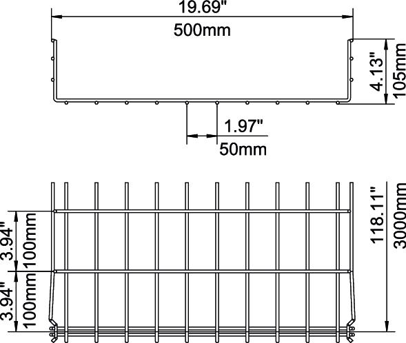 Termékleírás105 mm oldalmagasságú rácsos kábeltálca, összepattintható kivitel.