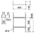 TermékleírásKábellétra perforált oldallemezzel, oldalmagasság: 110 mm; létrafokok: beszegecselve, felülről nyitott C-profilból.