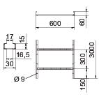 A létrafok rögzítése szegecselve A létrafokok kivitele Profil perforált Anyag acél Az oldalprofil kivitele lapos profil B méret 600 mm CO2-lábnyom (GWP) bölcsőtől a kapuig 8,6548 kg CO2e / 1 Méter Felület szalaghorganyzott Hasznos keresztmetszet 29800 mm² Hasznos keresztmetszet 298 cm² Hossz 3000 mm Létrafok távolsága 16,50 Létrafoktávolság 300 mm Magasság 60 mm Méret 60x600x3000 Méret 60x600x3000 Nagyfesztávú kivitel nem Oldalperforálás igen Pofa-lemezvastagság 1,5 mm Rozsdamentes acél, maratott nem Szélesség 600 mm Szín cink Támaszköz 1,5 m 3,1 kN/m Támaszköz 2,0 m 2,25 kN/m Támaszköz 2,5 m 1,5 kN/m Támaszköz 3,0 m 1,1 kN/m Támaszköz 3,5 m 0,75 kN/m Támaszköz 4,0 m 0,45 kN/m Támaszköz 4,5 m 0,3 kN/m Támasztáv 5,0 m 0,15 kN/m Tűzálló kábelrendszerek – nem Műszaki adatok