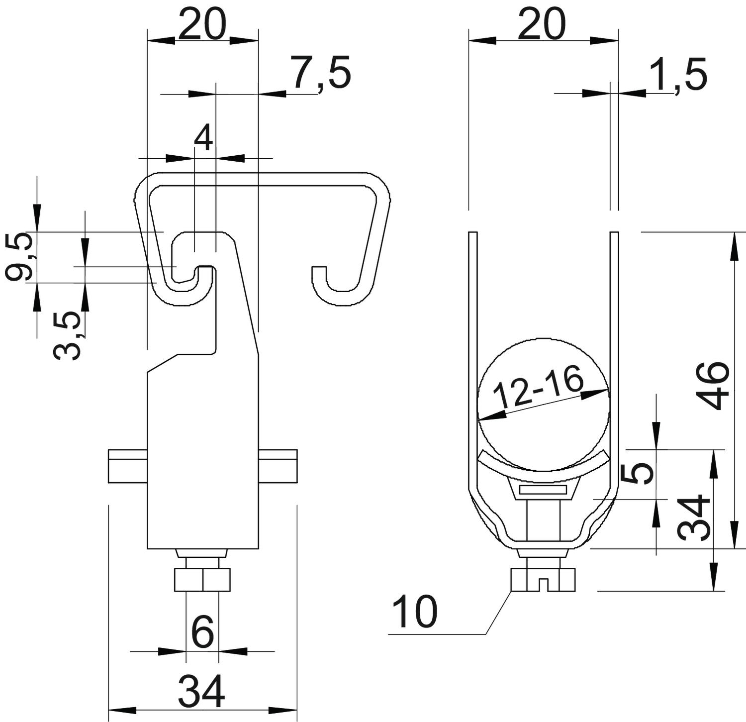 A kábelek/csövek száma 1 A méret 20 mm Anyag acél B méret 20 mm C méret 34 mm CO2-lábnyom (GWP) bölcsőtől a kapuig 0,0657 kg CO₂e / 1 Darab D befogási tartomány max. 16 mm D befogási tartomány min. 12 mm ellendarabbal nem Felület merítetten tűzihorganyzott Fém vályúval igen G méret (mm) M6 H méret 46 mm Halogénmentes nem Kiegészítő anyag acél Kiegészítő felület tűzi horganyzott L méret 34 mm max. csőátmérőhöz 16 mm Max. Meghúzási nyomaték 3 Nm max. résszélességű sínekhez (közzel) 22 mm Méret 12-16mm min. csőátmérőhöz 16 mm min. résszélességű sínekhez (közzel) 18 mm Műanyag vályúval nem Nyomóvályú anyaga Acél Szerelési mód Profilsín t méret 1,5 mm Ütésálló nem x méret 5 mm - Minden típus