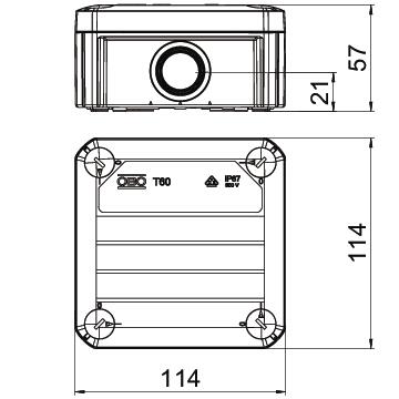 Leágazódoboz a kábelek és vezetékek csatlakoztatásához beltéri és védett kültéri területeken. Négyzetes forma kikönnyítéssel az oldalán és az alján. Alkalmas fali és mennyezeti, valamint szerelőlemezre történő szereléshez. Lehetőség a belső rögzítésre és sarokdómon keresztül történő szerelésre. Erős rögzítőfedéllel. Halogénmentes és UV-álló anyagokból készült.