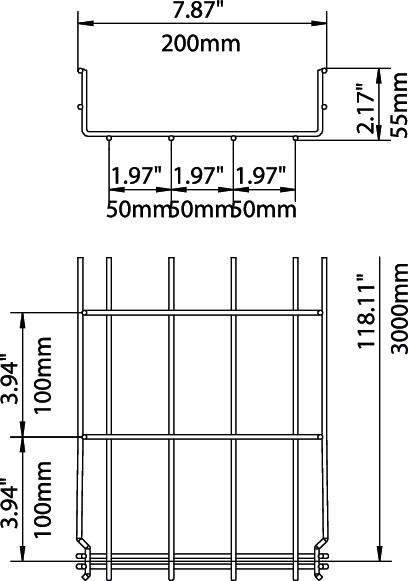 Termékleírás55 mm oldalmagasságú rácsos kábeltálca, összepattintható kivitelben.