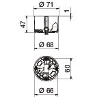 TermékleírásÜreges falba szerelhető szerelvénydoboz légmentesen záródó bevezető membránokkal, a beépítéshez legalább 47 mm mélység és 5 - 40 mm anyagvastagság szükséges.