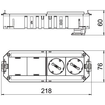 TermékleírásAz előreszerelt UTC4 univerzális tartó két beszerelt 33°-os, 16A-os védőérintkezős aljzattal és két vakfedéllel rendelkezik, a Modul 45 vagy a Modul 45 connect sorozat két szerelvénybeépítő egységének későbbi telepítéséhez. Alkalmas a VL kábelek és az R7, R9 és 9 névleges méretű szerelvénybeépítő egységek csatlakoztatására.