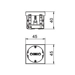 TermékleírásVédőérintkezős csatlakozóaljzat, egyes 0°, fokozott érintésvédelemmel, csatlakozó kapcsokkal, 2 pólusú, 16 A, 250 V~, IEC 60884-1 szerinti összekötő kapcsokkal.