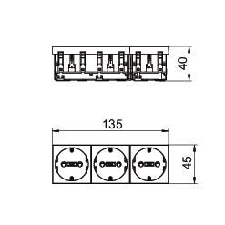 TermékleírásVédőérintkezős csatlakozóaljzat, hármas 0°, fokozott érintésvédelemmel, csatlakozó kapcsokkal, 2 pólusú, 16 A, 250 V~, IEC 60884-1 szerinti összekötő kapcsokkal.