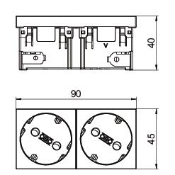 TermékleírásVédőérintkezős csatlakozóaljzat kettes, 33°-os, fokozott érintésvédelemmel, csatlakozó kapcsokkal, 2 pólusú, 16 A, 250 V~, 60884-1 szerinti összekötő kapcsokkal.