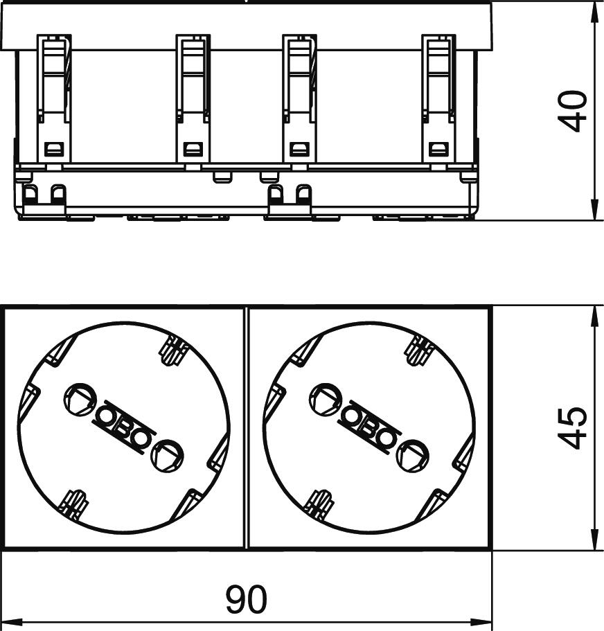 Rapid 45 csatornákba, szerelvényezhető csatornákba, energiaoszlopokba, padlócsatornákba és Deskbox-okba történő installáláshoz.