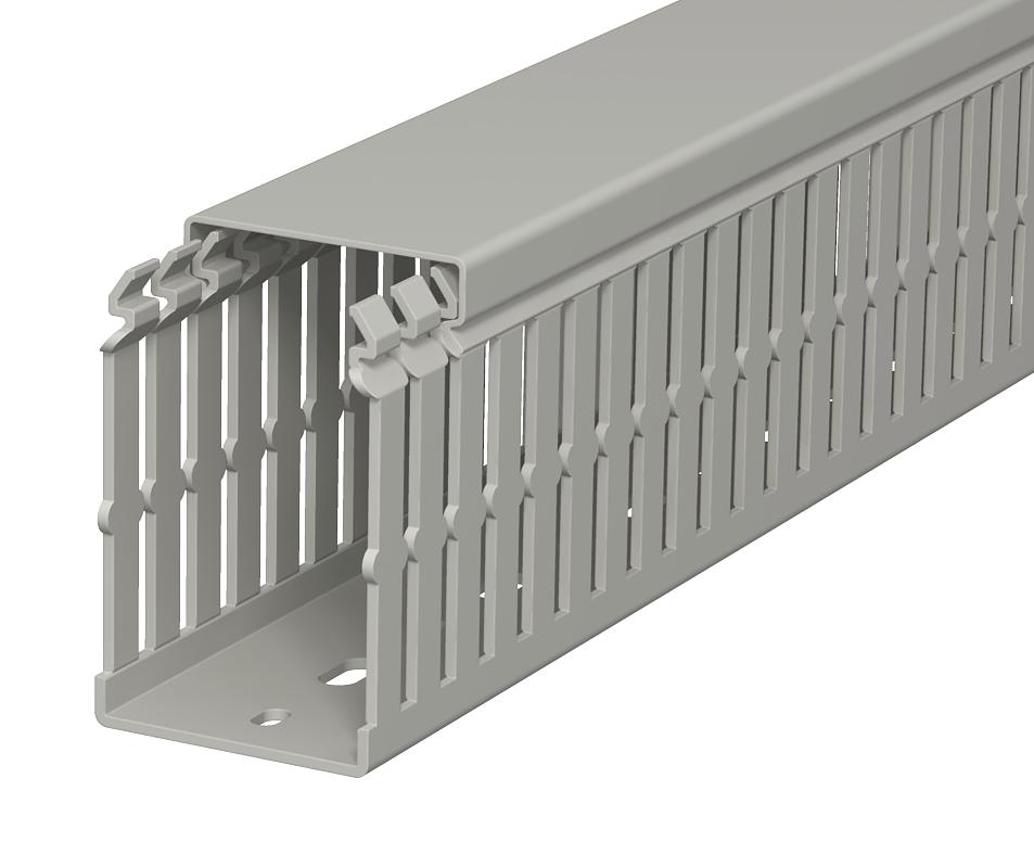 TermékleírásVezetékrendező csatorna a DIN EN 50085-2-3 szerint, beleértve a fedelet és a fenékperforálást az elektromos kábelek és vezetékek kapcsolószekrényben történő vízszintes és függőleges elhelyezéséhez. Kialakítása DIN-csatornaként. A bordázat szerszám nélkül kitörhető. A kábelek kivezetése a csatornából előre meghatározott töréspontokon keresztül lehetséges. Az oldalnyílások speciális bordázata megakadályozza a vezetékek kiesését. DIN EN 50085-2-3 szerint bevizsgált. Egyedi hosszúság kérésre rendelhető.