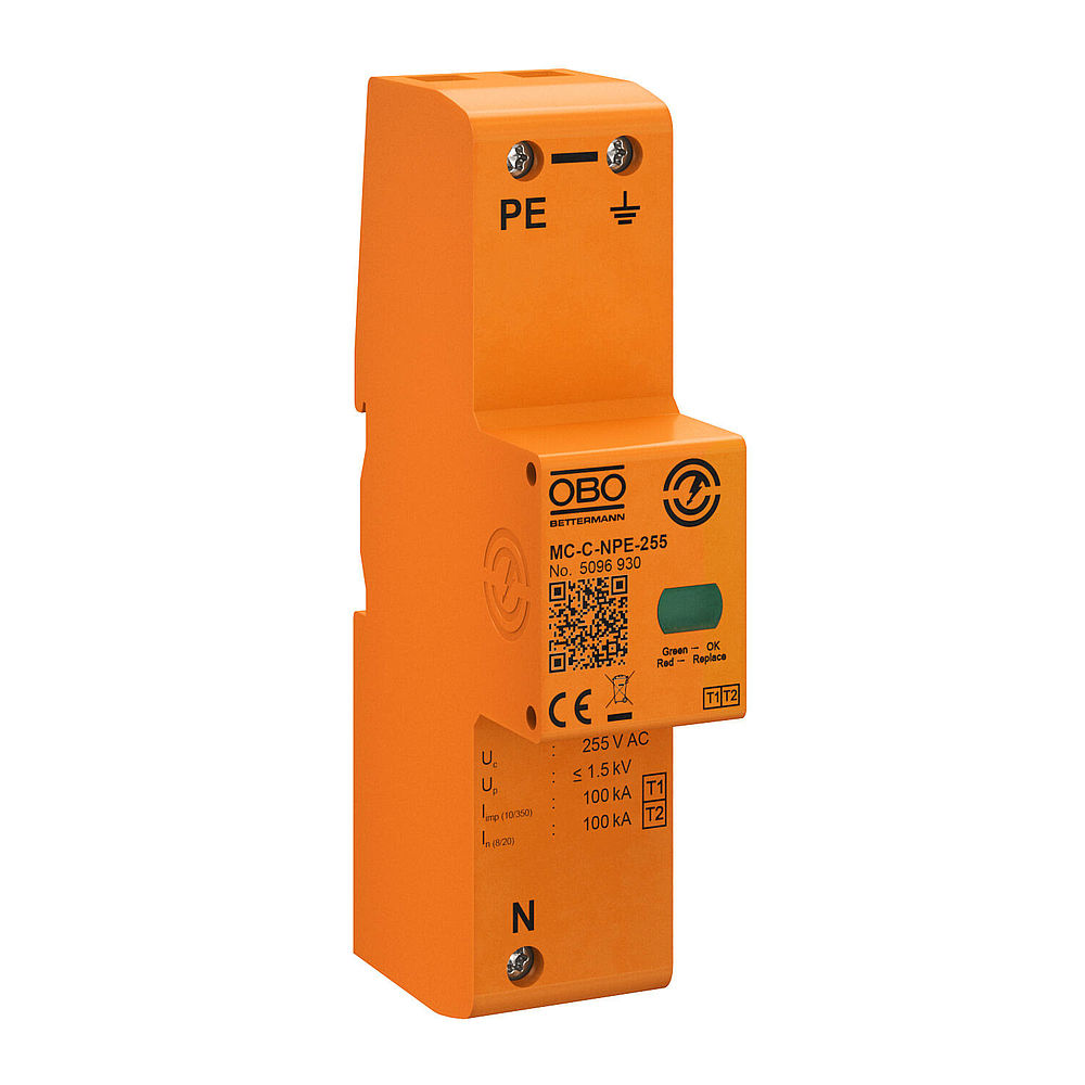 OBO integriert die normativ geforderte Absicherung kompakt im Überspannungsschutzgerät.